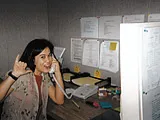 Sarah Christianson takes a call at the New York office
