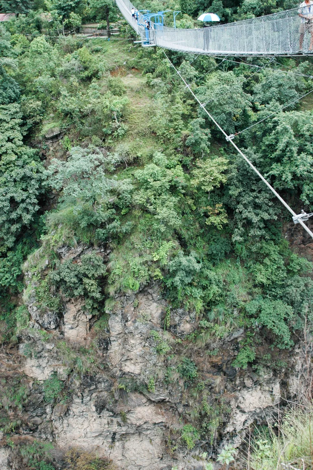 Divine Mother (with umbrella) on hanging bridge to “Last Resort”