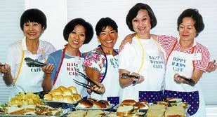 Delicious food served by Ann Rubendall, Jan Yuen, Soozi Kawakami, Randy Tamaru and Edith Sakai